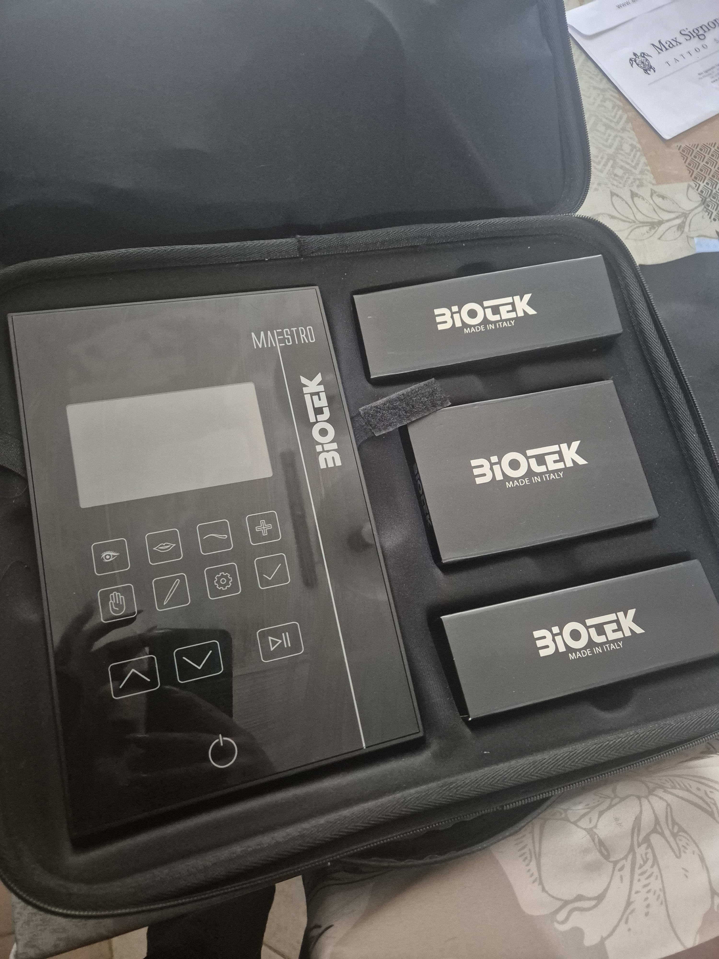 TRATTABILI Consolle Biotek Maestro Programmi preimpostati con 2 manipoli diversi per usi differenti(soft e strong) Con questo dermografo di lusso puoi eseguire Dermopigmentazione sopracciglia occhi labbra tricopigmentazione e installare il programma per eseguire microneedling. Questo dermografo riconosce la pelle e adatta il voltaggio in autonomia . Regalo anche 3 scatole dei suoi aghi (costano ciascuna 53€ +iva) Il macchinario nuovo invece viene 3800 +iva. Vendo con dispiacere perche ho gia diverse macchine per tatuaggi e trucco permanente e spostandomi di studio in studio per comodità preferisco portare la classica pen piu leggera e meno ingombrante.